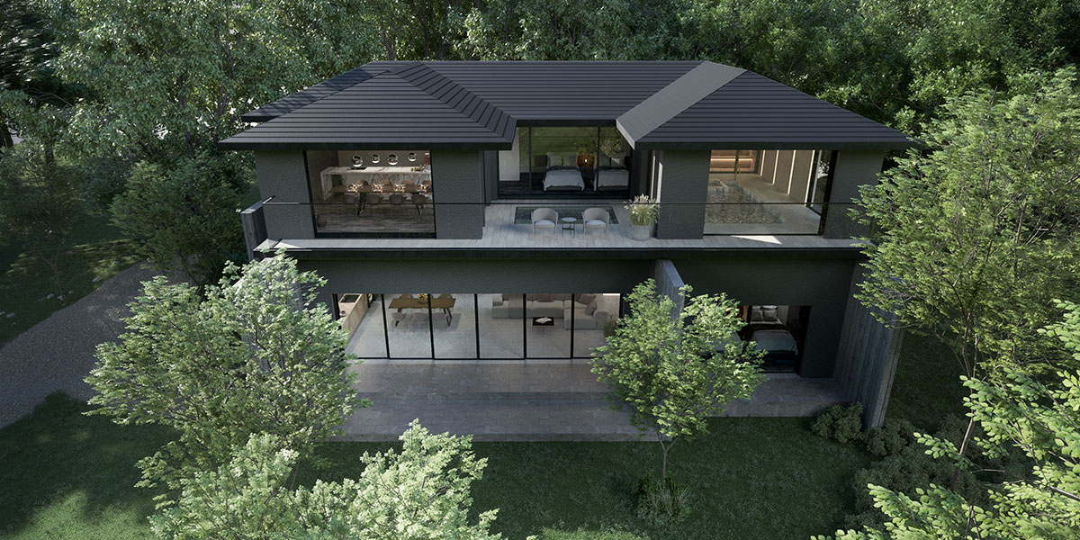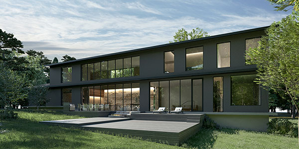 2階のクリアなプールの水底から柔らかな光が降り注ぐ、明るく開放的なLDK空間。水面を透過する光が、日常に特別な輝きを添えます。